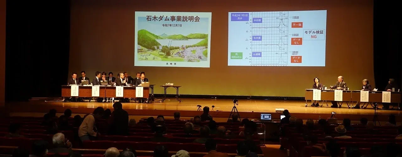 2025年4月、市民による石木ダム再評価監視委員会と長崎県が協力して「石木ダムの技術的な疑問等に対する説明会」を開催する運びとなりました。説明会は一般傍聴できる公開の形式で現在までに4回行われました。市民委員会が示した石木ダムの技術的な疑問等「15の評価ポイント」について、ポイント毎に県からの説明と質疑応答を行っています。(利水に関するものを除く)
